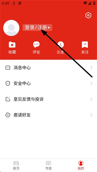 3、在個人頁面,點擊登錄/注冊,進入登錄頁面。
