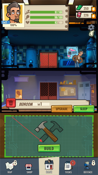 1、點(diǎn)擊下方綠色錘子工具按鈕,建造訓(xùn)練室和休息室。