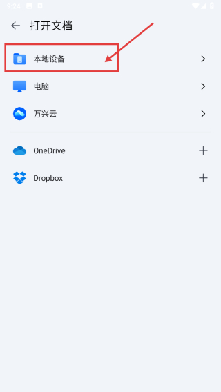 3、在打開文檔頁面,點(diǎn)擊本地設(shè)備選項(xiàng),進(jìn)入本地設(shè)備文件列表頁面。