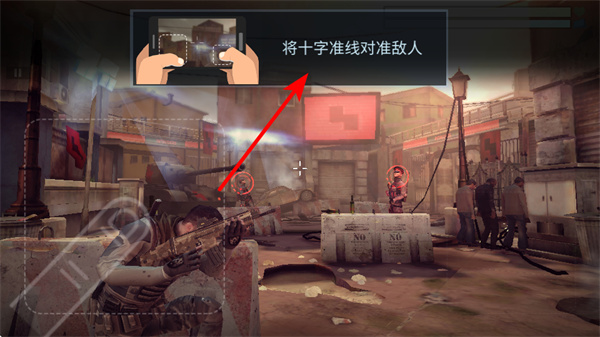 1、游戲中,需將十字準(zhǔn)線對準(zhǔn)敵人,這是精準(zhǔn)射擊的基礎(chǔ)操作,確保能命中目標(biāo)。