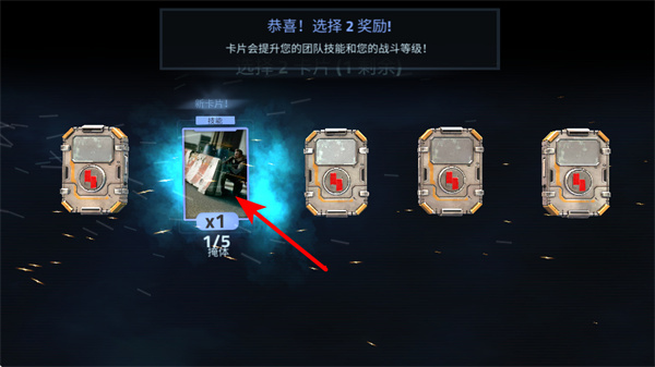 2、在獎勵選擇界面,選擇卡片獎勵,這些卡片可提升團隊技能和戰(zhàn)斗等級,助力后續(xù)戰(zhàn)斗。