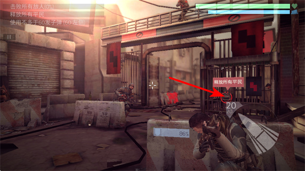 4、在關(guān)卡中,留意釋放所有平民的任務(wù)提示,優(yōu)先完成該任務(wù),同時擊敗敵人,達(dá)成關(guān)卡目標(biāo)。