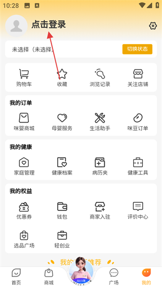 1、打開咪嬰伴侶,點擊頁面右下角我的,可進入個人中心頁面。