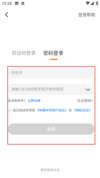 4、在密碼登錄頁面,輸入信息,同意協(xié)議后點擊登錄可完成賬號登錄。