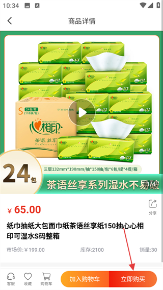 4、在商品詳情頁面,點擊立即購買可完成該商品的購買操作。