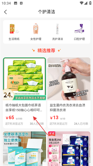 3、在個護清潔分類頁面,點擊心儀商品可進入該商品詳情頁面。