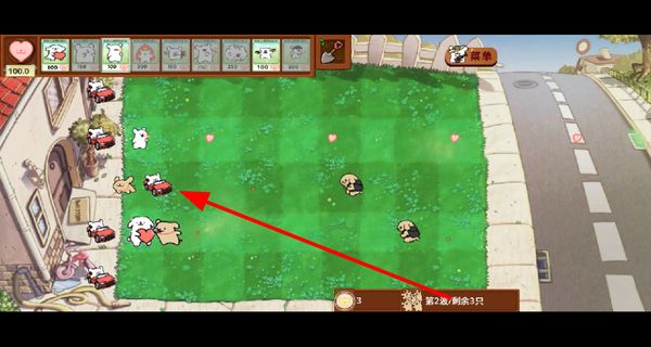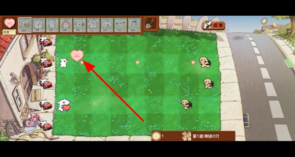1、玩家開局消耗愛心資源選擇線條小狗角色,將其放置在草地上,布置防線抵御敵人進(jìn)攻。