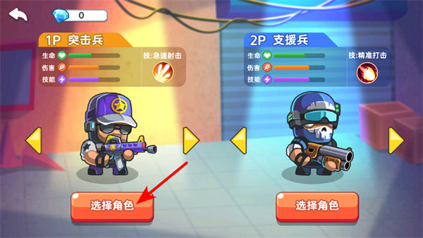 2、在角色選擇界面,點(diǎn)擊選擇角色按鍵,挑選合適的角色,如突擊兵,開啟戰(zhàn)斗征程。