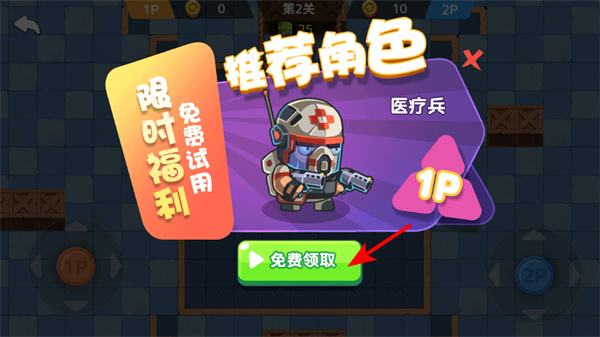 1、在推薦角色界面,點擊免費領(lǐng)取按鍵,可獲取限時福利醫(yī)療兵,為團(tuán)隊提供治療支援。