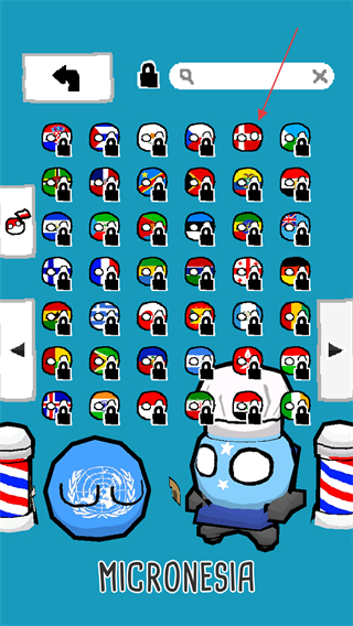 3、點(diǎn)擊皮膚后,小藍(lán)球會(huì)給角色進(jìn)行換裝,下方會(huì)顯示換裝后所代表的國(guó)家。