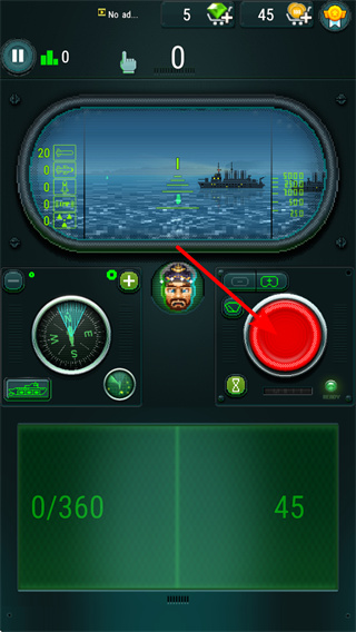 4、在戰(zhàn)斗的界面,點(diǎn)擊紅色的發(fā)射按鍵,可發(fā)射魚雷攻擊敵人船只,推進(jìn)了戰(zhàn)斗的進(jìn)程。