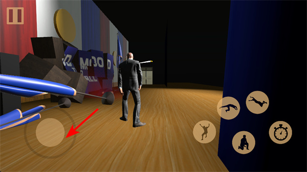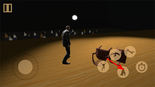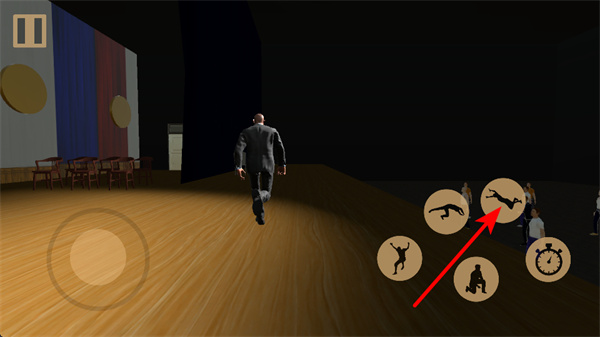3、點擊右側(cè)的下蹲按鍵,可讓角色下蹲,利用場景中的掩體躲避敵人或隱藏自身。