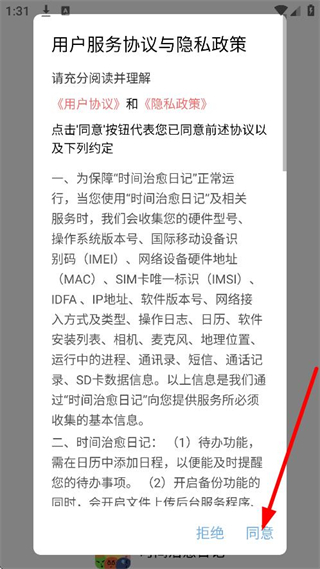 1、在用戶服務協(xié)議與隱私政策彈窗中,點擊同意,進入主界面。