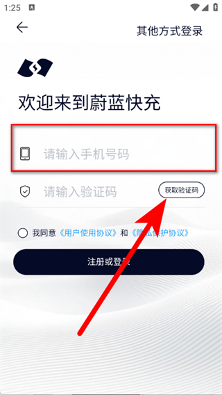 3、進(jìn)入登錄界面,輸入手機(jī)號(hào)碼,點(diǎn)擊獲取驗(yàn)證碼。