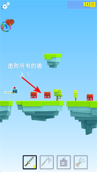1、在游戲中,朝著紅色箭頭指引的獸人方向攻擊,擊敗所有獸人以完成關(guān)卡目標。