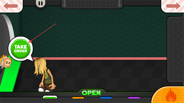 1、進(jìn)入游戲,點(diǎn)擊綠色按鈕開始營(yíng)業(yè)接待顧客。