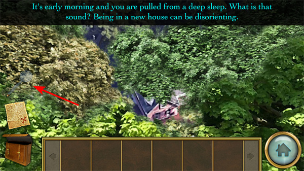 2、在森林場(chǎng)景中,留意紅色箭頭指引的區(qū)域,觀察可發(fā)現(xiàn)隱藏的物品或線索,為解謎提供幫助。