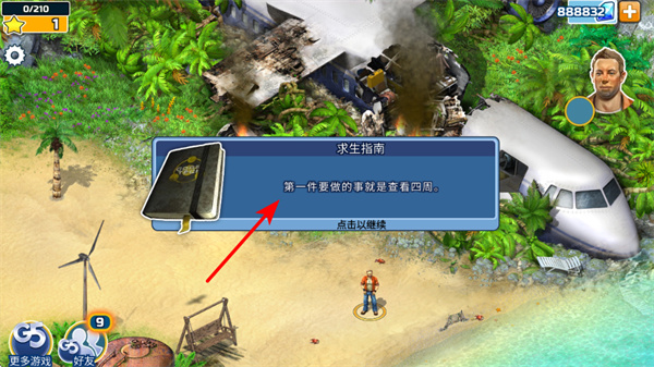 1、游戲初期,留意指南提示,按照查看四周的指引,熟悉荒島環(huán)境,為后續(xù)生存和任務(wù)開展奠定基礎(chǔ)。