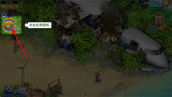 2、點(diǎn)擊左側(cè)的任務(wù)圖標(biāo),可查看當(dāng)前任務(wù)要求,明確找到棲身之處等目標(biāo),避免在荒島中迷失方向。
