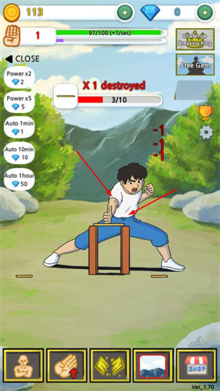 設(shè)定極低的操作難度,無(wú)需掌握復(fù)雜技巧,簡(jiǎn)單操作就能完成劈磚動(dòng)作,不管是否有相關(guān)經(jīng)驗(yàn)都能輕松參與,不會(huì)因操作問(wèn)題影響體驗(yàn),專注于減壓放松。