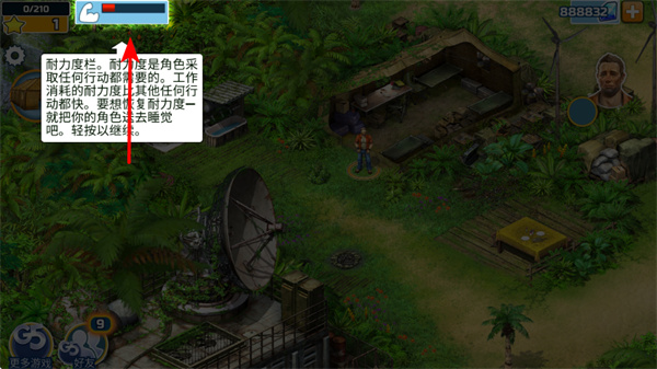 2、留意耐力欄提示,耐力是角色行動的關(guān)鍵資源,工作行動都會消耗耐力,規(guī)劃角色行動,避免耗盡影響生存進(jìn)程。