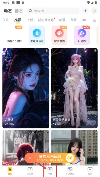 1、打開主題壁紙APP,點擊底部主題選項,進入主題板塊頁面。