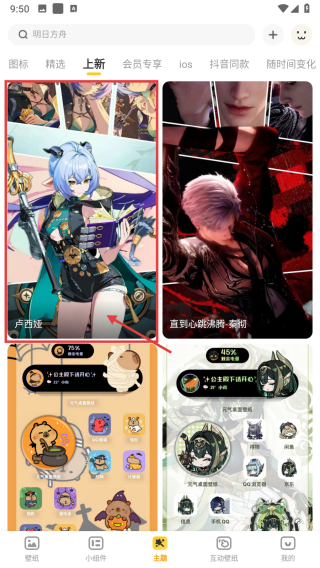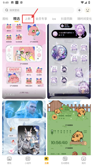 2、在主題板塊頁面,點擊上新選項,查看最新上線主題列表。