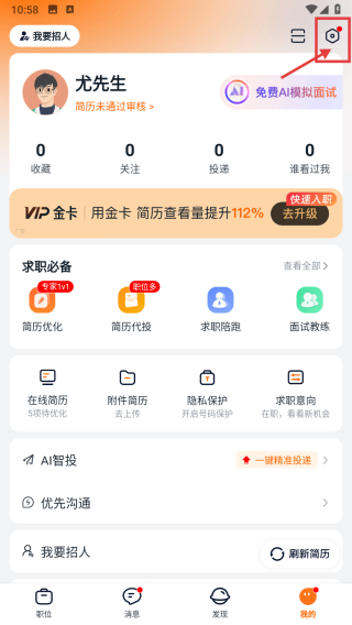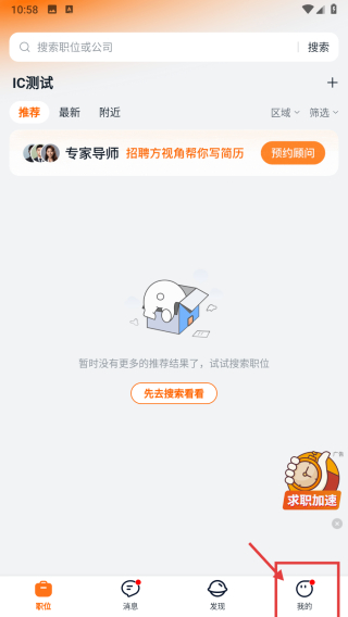 1、打開求職類APP首頁,點擊底部我的選項,進入個人中心頁面。