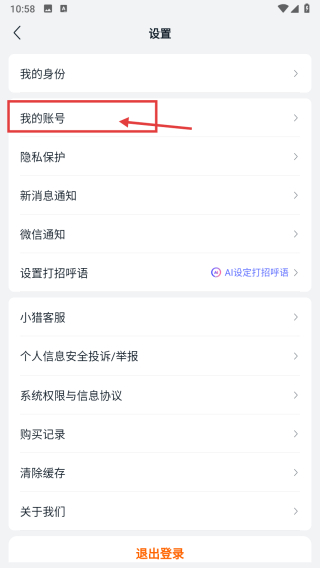 3、在設(shè)置界面,點擊我的賬號選項,進入賬號管理頁面。