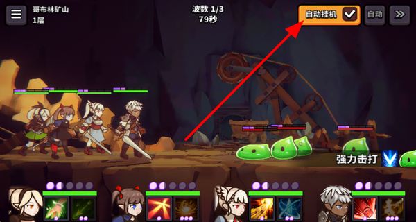 1、開啟自動掛機功能,角色在哥布林礦山等場景自動參與戰(zhàn)斗,無需手動操作,輕松推進游戲進程,還能節(jié)省時間。