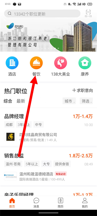 1、打開最佳東方,點擊首頁餐飲板塊,進入餐飲崗位列表。