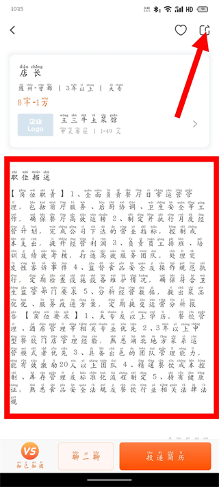 3、在崗位詳情頁,點擊右上角分享圖標,彈出分享選項。