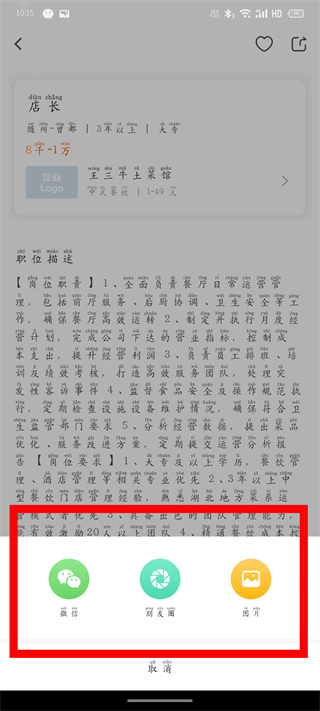 4、選擇微信、朋友圈等分享渠道,完成崗位信息分享。
