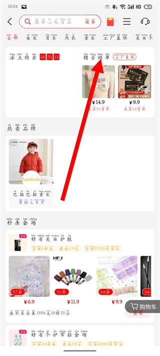 2、在選品頁面中,選擇銷量榜單分類,進入銷量榜單頁面。