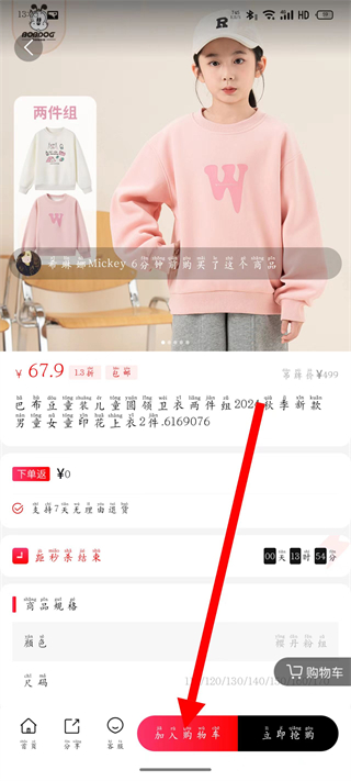4、在商品詳情頁,點擊加入購物車按鈕,加入購物車進行結算購買。