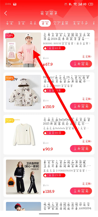 3、在銷量榜單頁面,選擇目標商品,點擊進入商品詳情頁。