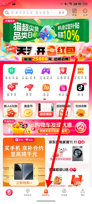1、打開好省購物平臺,點擊底部導航欄的選品中心,進入選品頁面。