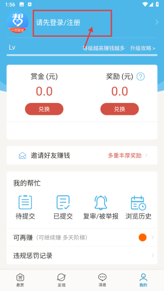1、打開(kāi)眾人幫類APP首頁(yè),點(diǎn)擊底部我的選項(xiàng),進(jìn)入個(gè)人中心頁(yè)面。