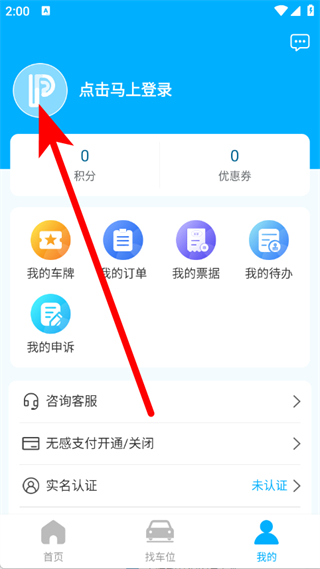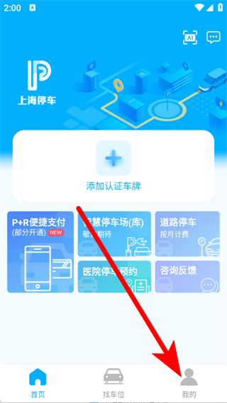 1、打開上海停車,點(diǎn)擊底部我的,進(jìn)入個(gè)人頁(yè)面。