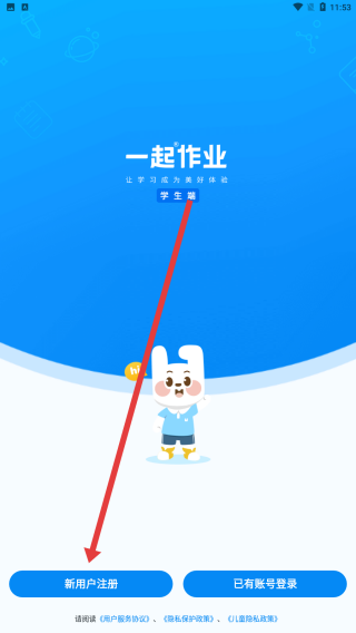 2、在一起作業(yè)—學(xué)生端界面,可以點(diǎn)擊新用戶注冊(cè)按鈕,進(jìn)入賬號(hào)注冊(cè)流程,準(zhǔn)備填寫注冊(cè)信息。