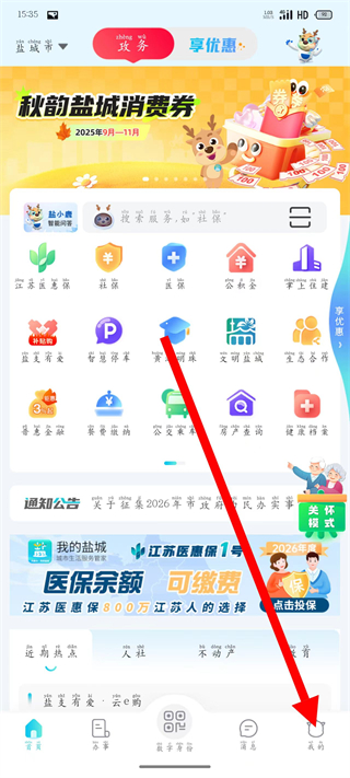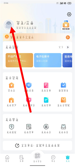 1、打開我的鹽城,點(diǎn)擊底部導(dǎo)航欄我的,進(jìn)入個人頁面。