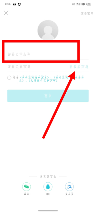 3、在登錄頁面,輸入手機(jī)號碼,點(diǎn)擊獲取驗證碼。
