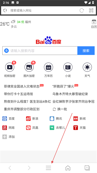 1、打開(kāi)私密瀏覽器應(yīng)用,在首頁(yè)點(diǎn)擊底部的菜單按鈕。