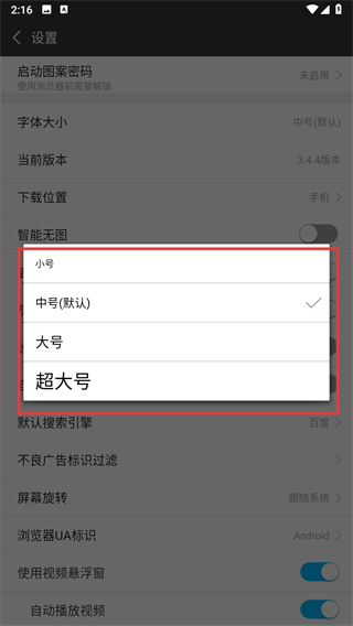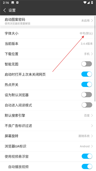 3、在設(shè)置頁(yè)面,點(diǎn)擊字體大小選項(xiàng)。