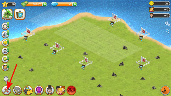 1、在城市建設(shè)游戲中,點(diǎn)擊左側(cè)建筑類按鈕,打開建筑選擇界面,開展城市建設(shè)的第一步,選擇各類建筑來規(guī)劃城市。