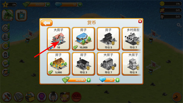 2、在貨幣建筑界面,選擇大房子等建筑,這些建筑是城市人口居住和發(fā)展的基礎(chǔ),可推動(dòng)城市人口增長(zhǎng)和經(jīng)濟(jì)發(fā)展。