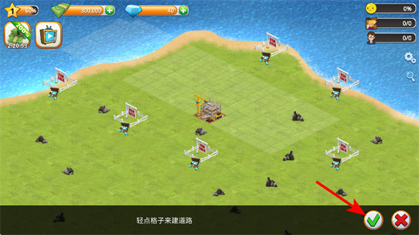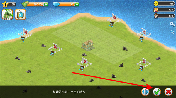 3、將選擇的建筑拖到空地上,點(diǎn)擊綠色對(duì)勾按鈕確認(rèn)建筑放置,完成建筑的建設(shè)部署,逐步完善城市的建筑布局。