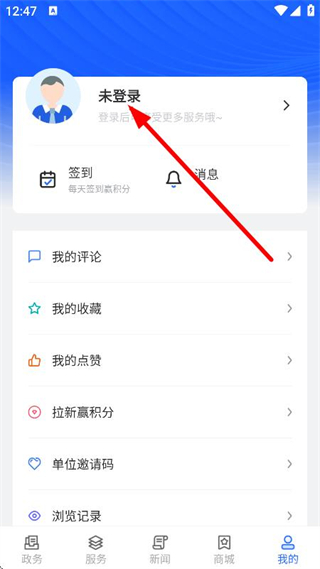 2、在個人頁面,點擊未登錄,進入登錄頁面。