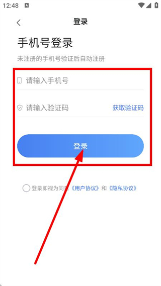 4、輸入手機號驗證碼,隨后點擊登錄,完成賬號登錄操作。