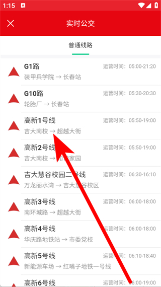 3、在線路列表頁面,選擇目標(biāo)公交線路,點(diǎn)擊進(jìn)入線路詳情頁。